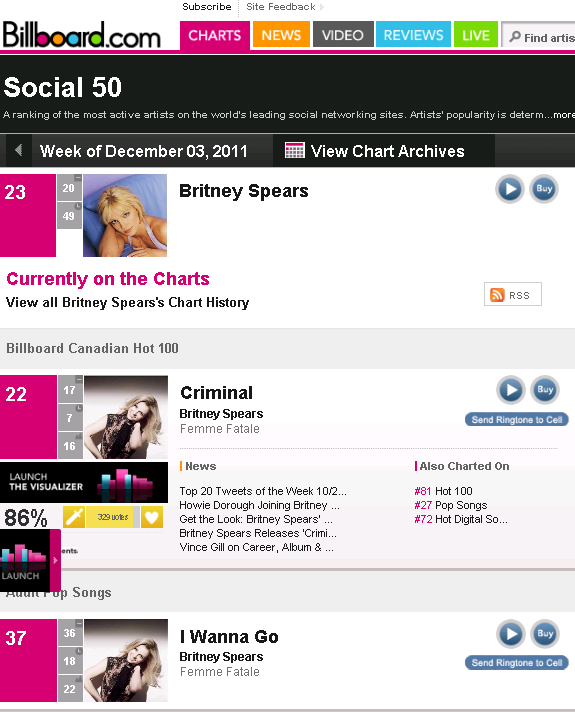 Britney Spears Criminal drops again from Billboard HOT 100 charts this week at #81, and Femme Fatale is still not managed reenter Billboard 200 album, give your support by now!