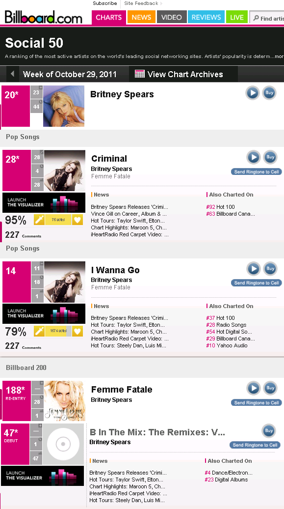 Finally Femme Fatale re-enters Billboard album charts this week at #188 in its 28 weeks on charts! B In The Mix Vol. 2 album debuts at #47 Billboard 200, #4 Dance/Electronic Album & #23 Hot Digital Album! Our hope is answered, but don't forget to keep purchase it, armies!