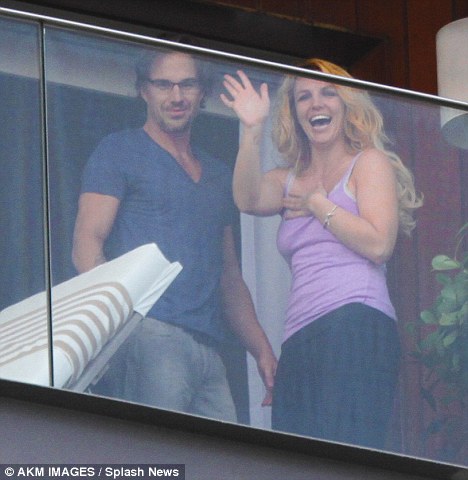 Brit Brit waved to fans gathered below her hotel room and even created a
