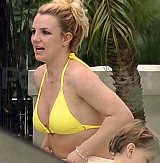 Britney spotted with green light bikini on her Rio vacation, now she's done yellow Bikini in the pool!