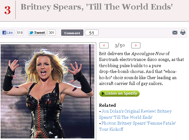 Till The World Ends is on #3 Rollingstone 50 Best Singles of 2011